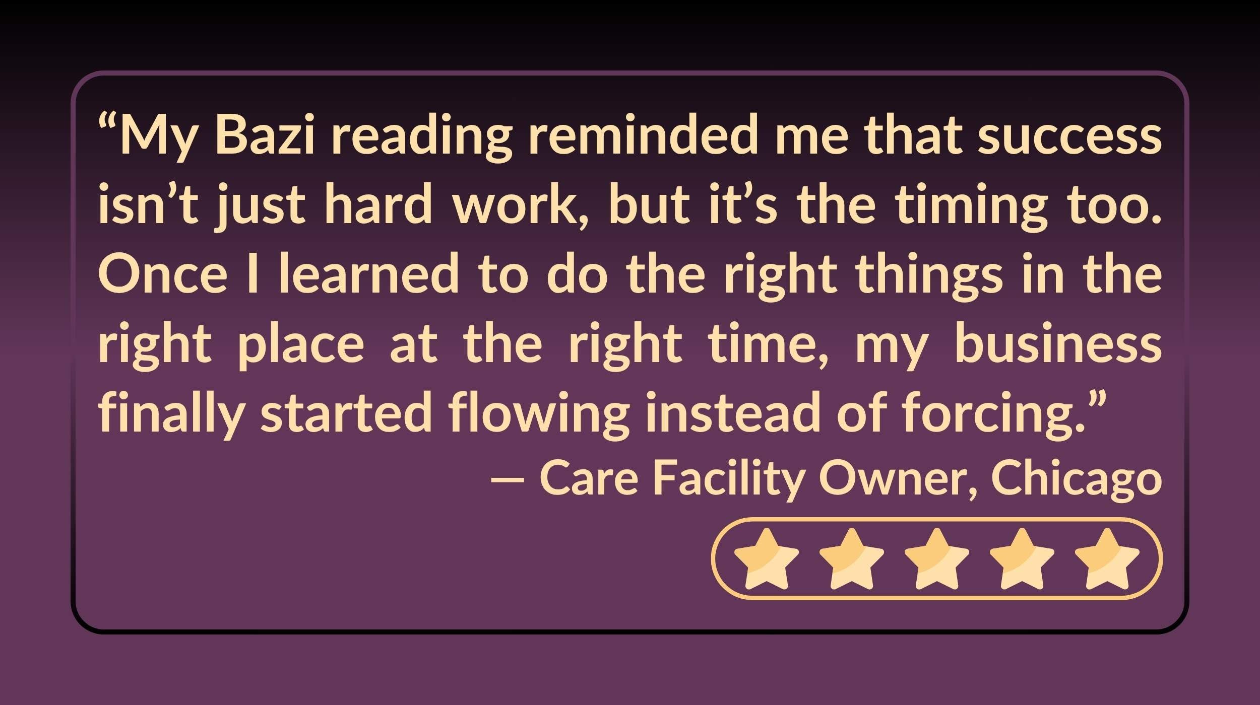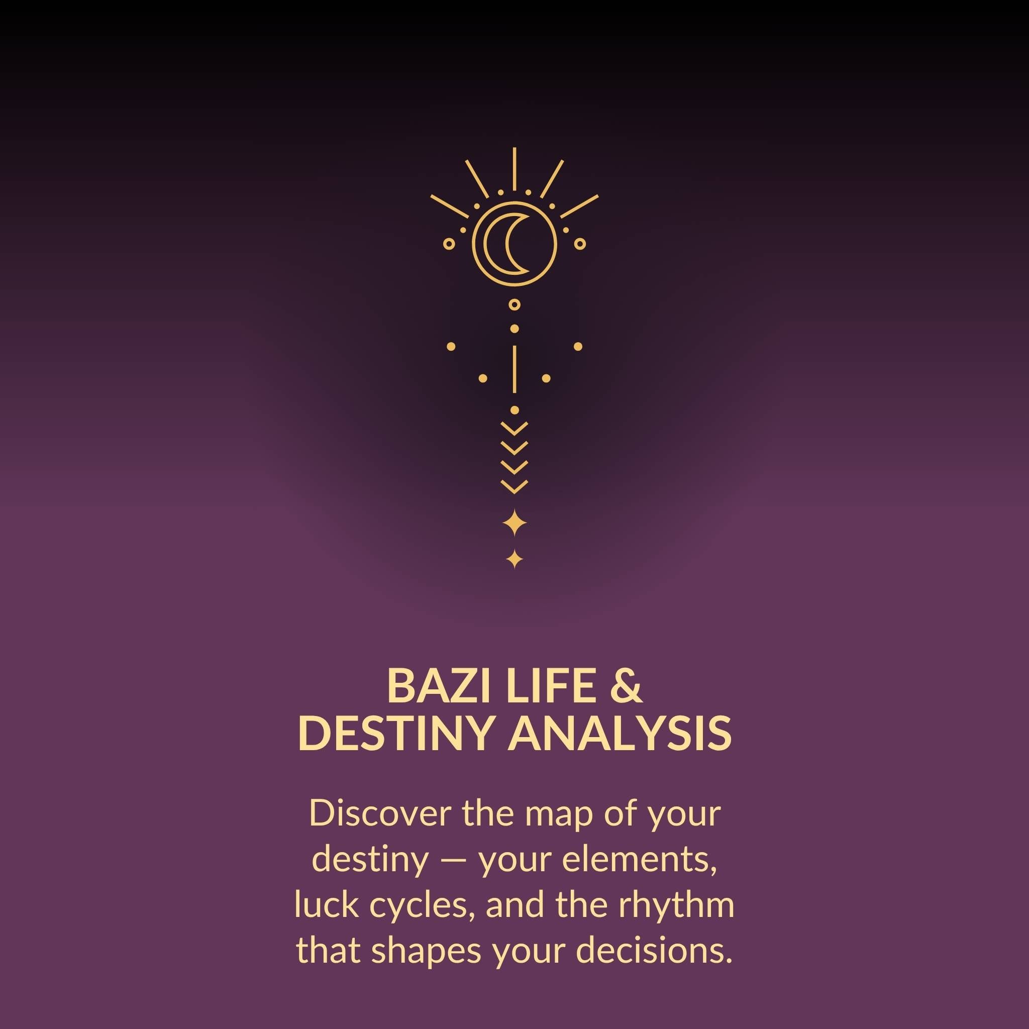 A Bazi Reading analyzes your birth date and time to reveal your life’s patterns—strengths, challenges, timing, and potential. It helps you understand when and how to act so your efforts align with life’s flow.