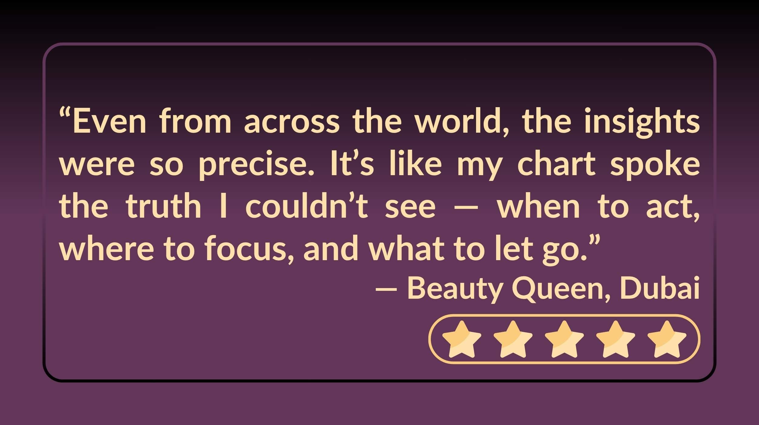 Each session is tailored to you. We begin by examining your birth chart, and then discuss your key life themes, including career, wealth, health, relationships, and timing. You’ll gain clarity about your cycles, strengths, and practical actions to support your goals.